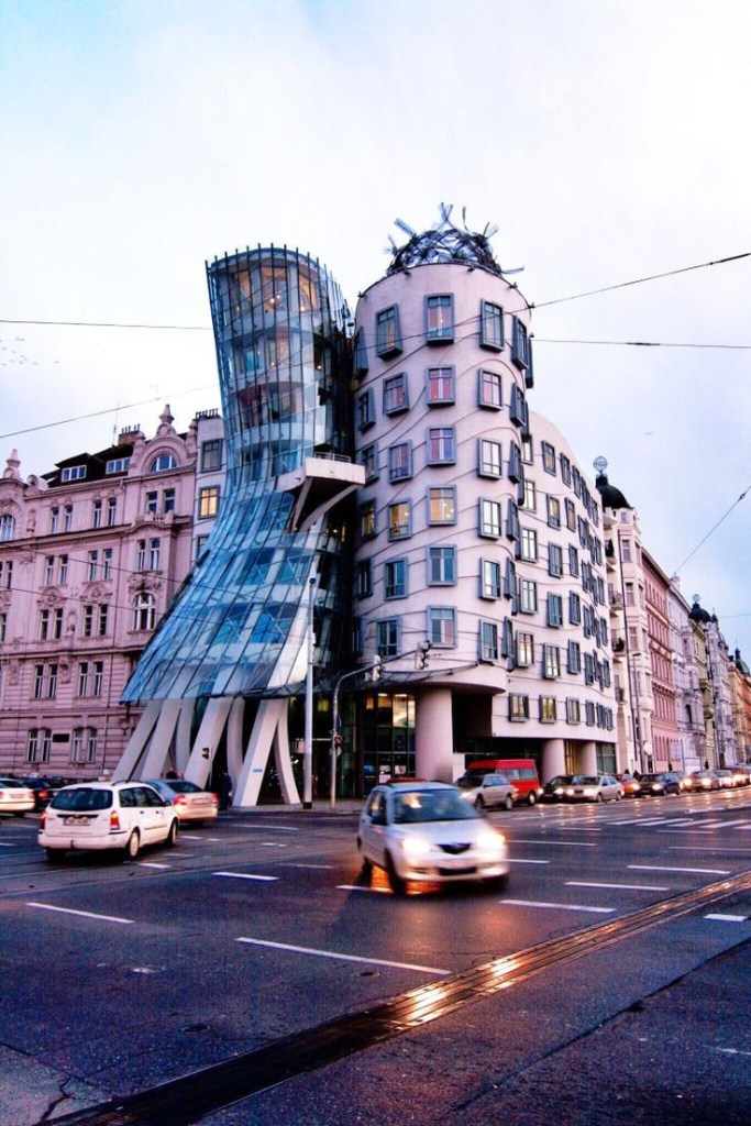 Due to its distinctive pair of towers, which resemble a dancing couple, the Nationale-Nederlanden offices in Prague are also known as Fred and Ginger. In 1996, Gehry and a local architect named Vlado Milunc collaborated to create the building, which was made out of a tight volume of metal mesh and glass and a concrete cylinder.